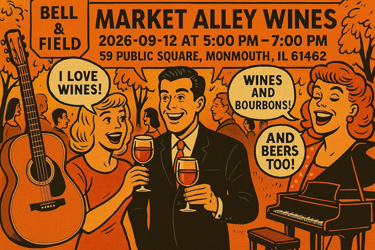 Market Alley Wines stands proudly at 59 Public Square in Monmouth, a quaint location radiating small-town charm. Known for its selection of handpicked wines and rustic yet refined setting, this venue is a haven for wine enthusiasts and casual visitors alike. Monmouth itself is brimming with history and community spirit, making your visit more than just about the event—it’s an exploration of local culture.